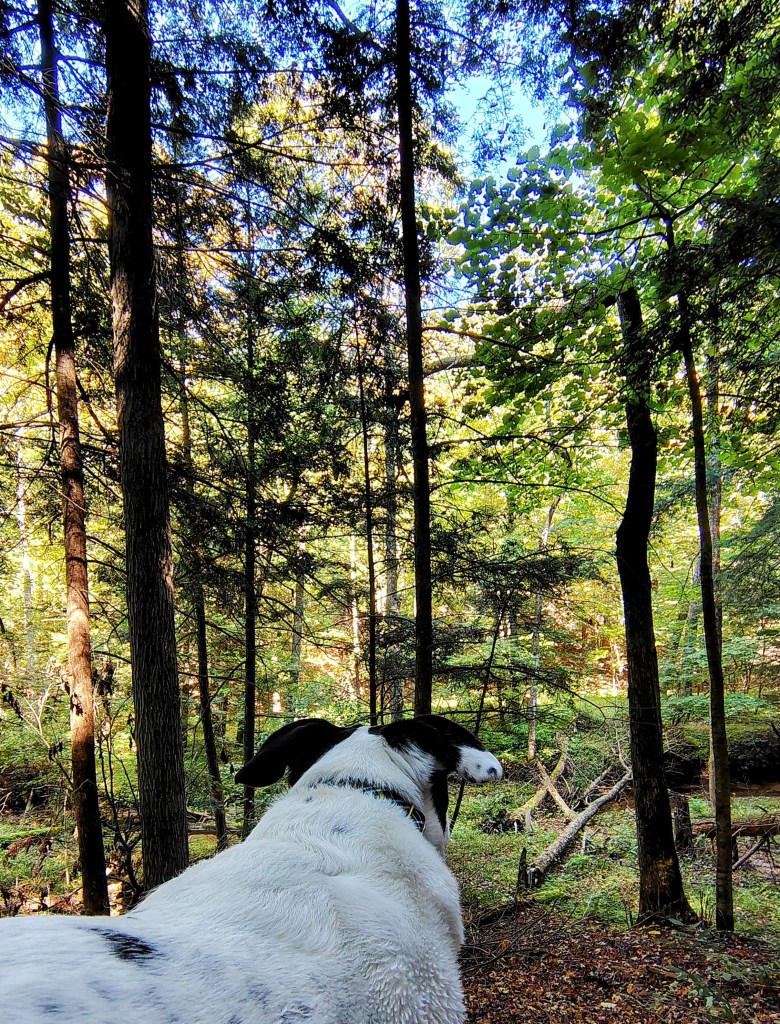 As I trotted farther down the trail, I started thinking about all the places I’ve explored with my hoomans and friends. Sometimes when you wander far enough down a trail, you realize some of the ones you love aren’t walking right beside you anymore.