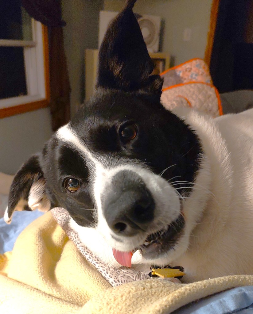 I guess those scientists found that canine heartbeats can synchronize with our owner’s, and create a “calming connection”. I am not sure if my heart beats the same as my hooman, but I do try my hardest to help her out by laying completely acrossed her body. Kinda like a 60 pound weighted blanket. I think that by pressing close to her I am helping her know she is safe with me (and not going anywhere). ♥️