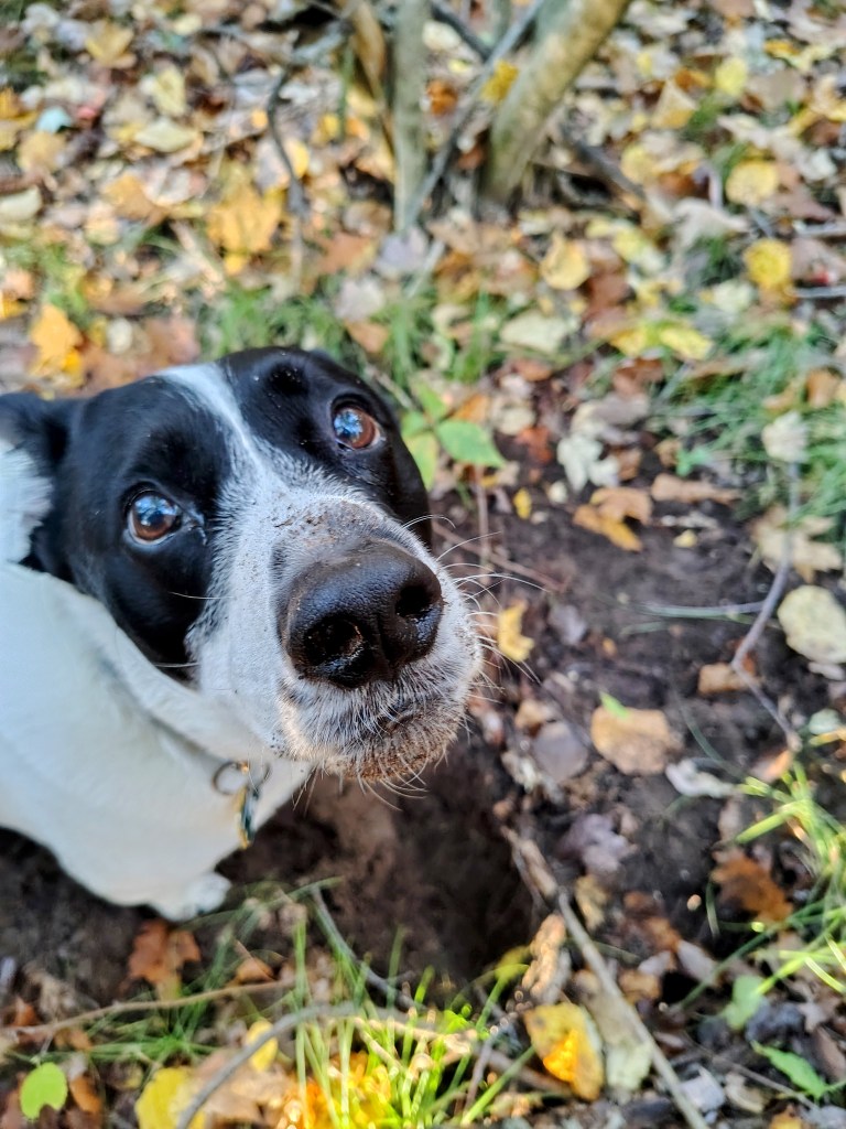 As we trotted down the treelined trail, I usually run ahead in excitement, then double back to make sure my hooman isn’t lagging or distracted. With daylight saving time upon us, we have to stay on schedule before darkness sneaks in. Sometimes I get distracted too, digging in the wrong place and ending up with muddy whiskers before I find my way back on the tracks.