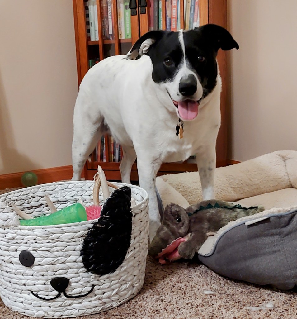 I have a toy basket that is full of all kinds of balls, chews and stuffys. So when I get bored, I usually have plenty of things to play with to keep me busy. I am a Jack Russel-Beagle-Hound, so I try really hard to keep my energy under control. Only this week, I accidentally destroyed all my stuffy toys. I am not sure what came over me – I just could not stop myself. I tore into those stuffys, ripping and tearing. Covers were torn, stuffing was flying – until I emerged victorious with the squeaker from each of my toys. Ha! Take that purple spider! Stick it Mr. Crocodile!