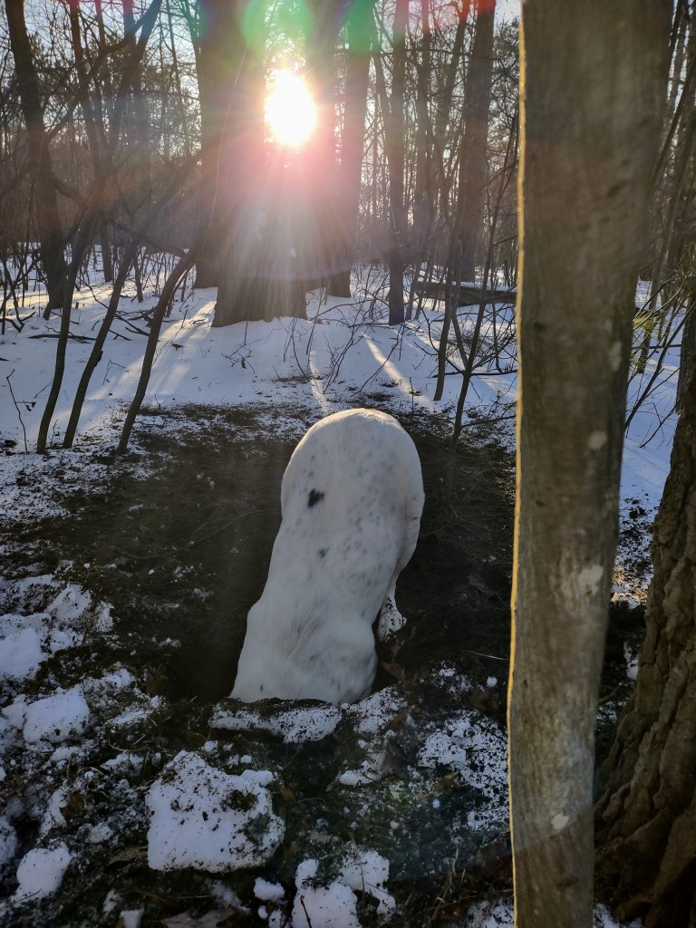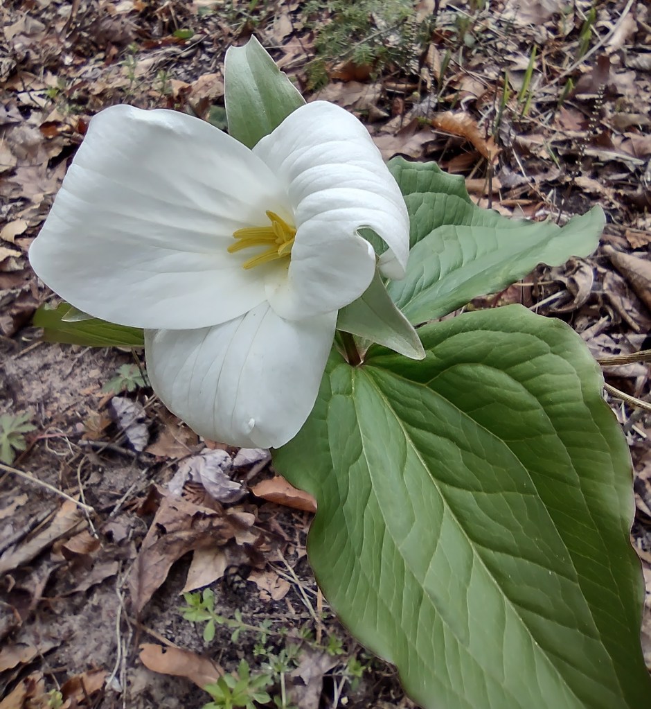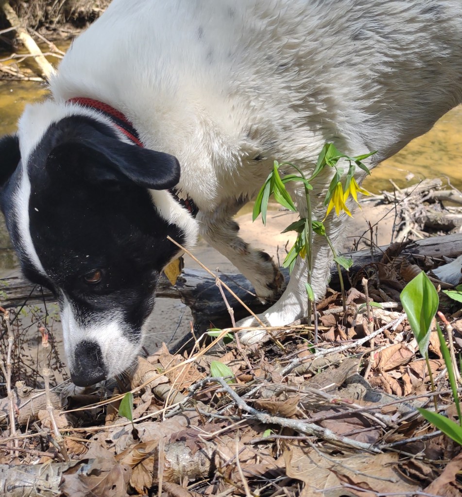 Trillium remind me of a flower you would see in the hooman’s garden. They are big and bold like a daffodil. Probably one of the biggest wildflowers that I have seen. I have found them growing on a wet hillside but also right along my trail in my sandy woods. Tri means 3 – so Trillium is easy to remember. It has 3 big petals and 3 big leaves to match.