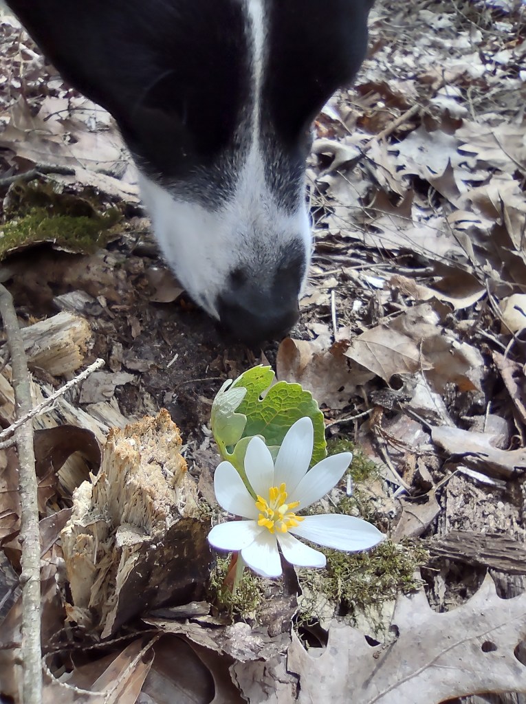 Bloodroot are cool flowers that don’t have leaves. They only have one big stem that stand straight up out of the ground like giant clovers. The one white flower is pretty fragile (don’t ask me how I know) and you will want to be careful if you snap the stem. It contains red juice that can cause a rash or blister skin. These are one of the first flowers out in my woods. They tend to bloom when it’s still pretty chilly out.